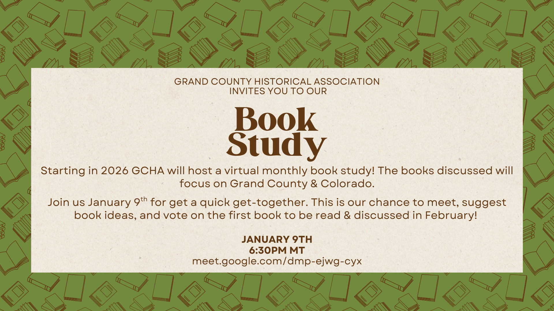 Starting in 2026 GCHA will host a virtual monthly book study! The books discussed will focus on Grand County & Colorado.